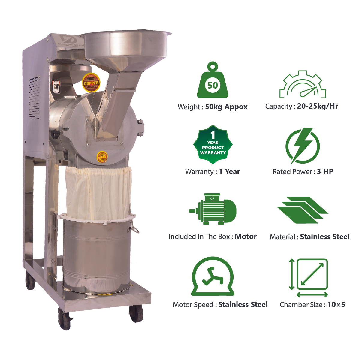 | CAPACITY | 20 -25 KG/HR |